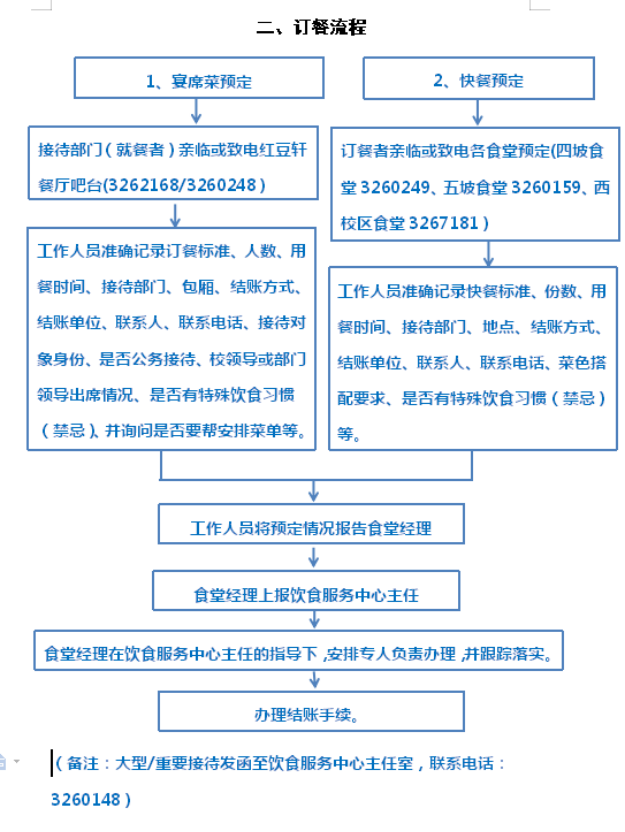 饮食服务中心订餐业务流程图